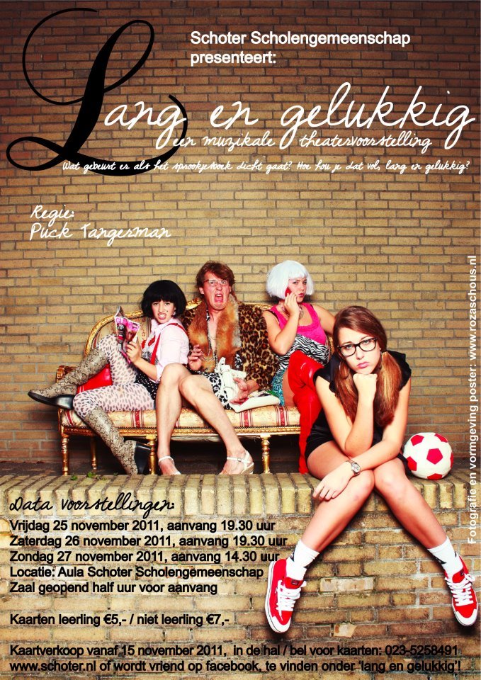Twee keer per jaar maken leerlingen samen met docenten een fantastische theaterproductie. De zogeheten onderbouw en bovenbouwproductie Aan alle onderdelen van theater is gedacht: mooie kostuums, goed geluid, sterke regie en een prachtig podium. De zaal zit vol met ouders, belangstellenden en de pers schrijft een recensie in de krant. De ‘vibe’ van het succes is nog weken te voelen in de gangen. In het ‘Schotertheater’ zijn al veel voorstellingen geweest  zoals ‘Streetwise’, ‘Sofie en Lange Wapper’, ‘#FEEKS’,  ‘Moulin Rouge’ en ‘Snorro’.